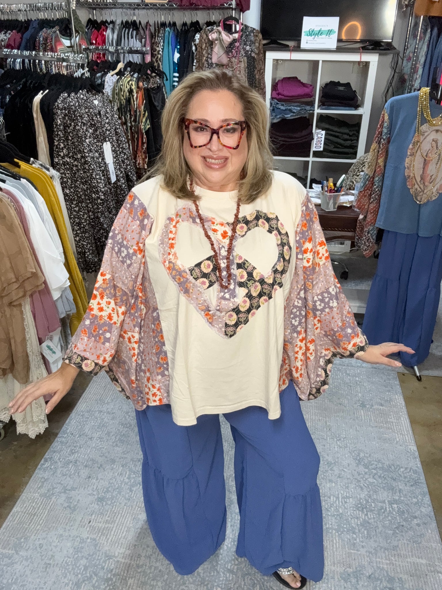 UPCYCLING INSPIRED MIX MEDIA TOP 3/4 TO LONG SEEVE LENGTH OVERSIZED BOXY FIT WITH REGULAR BODY LENGTH CREW NECK MINERAL WASHED
